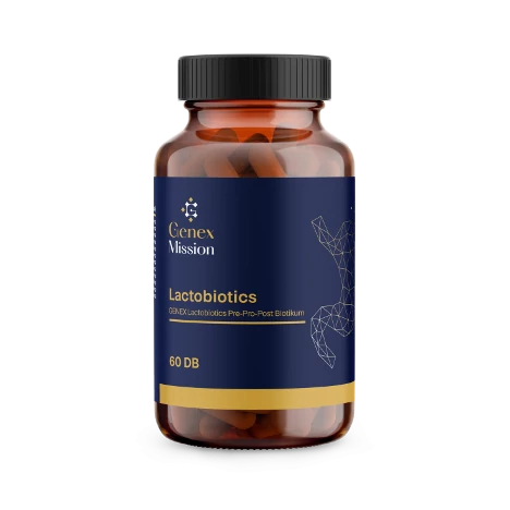 GENEX Lactobiotics Pre-Pro-Post Biotikum egy komplex, mely a fő Lactobacillus törzsek és Saccharomyces Boulardii, Bacillus subtilis mellett a jótékony baktériumok szaporodásához, kolóniaképződéséhez is tartalmaz szerves tápanyagokat, valamint a támogató faktorként tartalmaz Magnéziumot és B6 Vitamint.